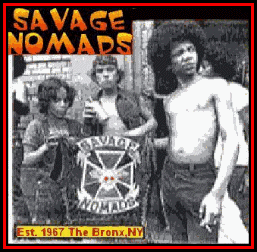 No Racial Barriers. In The Beginning They Were Called "Nomads On Wheels" & Their Turf Was In The South Bronx, NY. As They Expanded They Spread All Over The 5 Boroughs & Even In Connecticut. In 1973 After "Black Benji" Got Locked Up Fellow Vice President: "Crazy Joe" Took Over As President Until His Death In The Early 80's. The Nomads Are Also Featured In The Following Documentaries: "80 Blocks From Tiffany's" 1979 & "Flyin' Cut Sleeves" 1993. The Savage Nomads Remain Active To This Day & Continue To Fly Their Colors Proudly In The Bronx, NY. Rest In Peace Crazy Joe, Crazy Ted, Horse, Jamal, Mama, Cowboy, Smokie, Apache, China And The Other Fallen Savage Nomads Brothers & Sisters. S.N.F.F.S.N